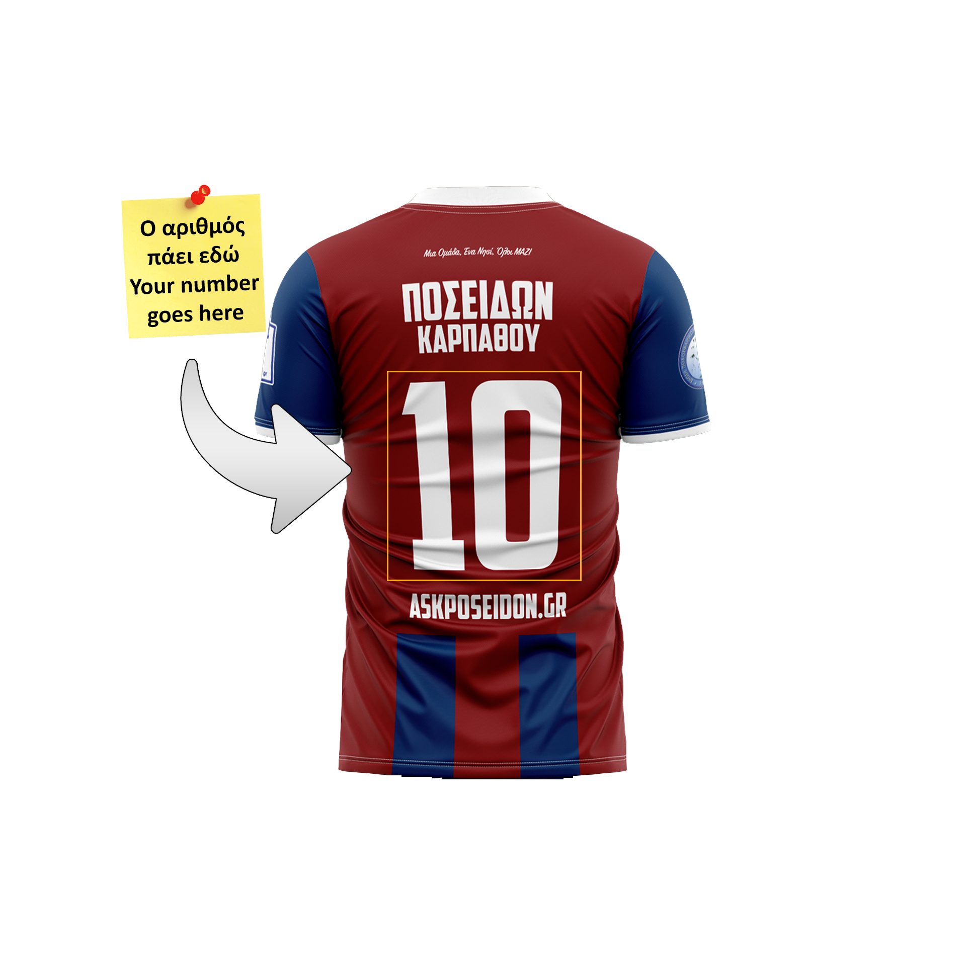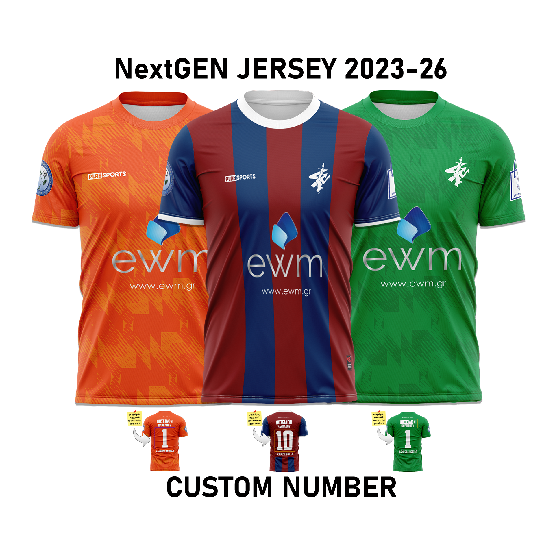Με αυτό το προϊόν σας δίνεται η δυνατότητα απόκτησης της εμφάνισης NextGEN 2023-26, στο χρώμα της επιλογής σας (βυσσινί/σκούρα μπλε, πορτοκαλί, πράσινη) και με τον αριθμό της επιλογής σας τυπωμένο στο πίσω μέρος της εμφάνισης, από πάνω από τη διεύθυνση του ιστότοπου του συλλόγου μας. Ακριβώς πάνω από την ονομασία του συλλόγου θα είναι τυπωμένο και το σλόγκαν του Ποσειδώνα, «Μία Ομάδα Ένα Νησί, Όλοι ΜΑΖΙ».