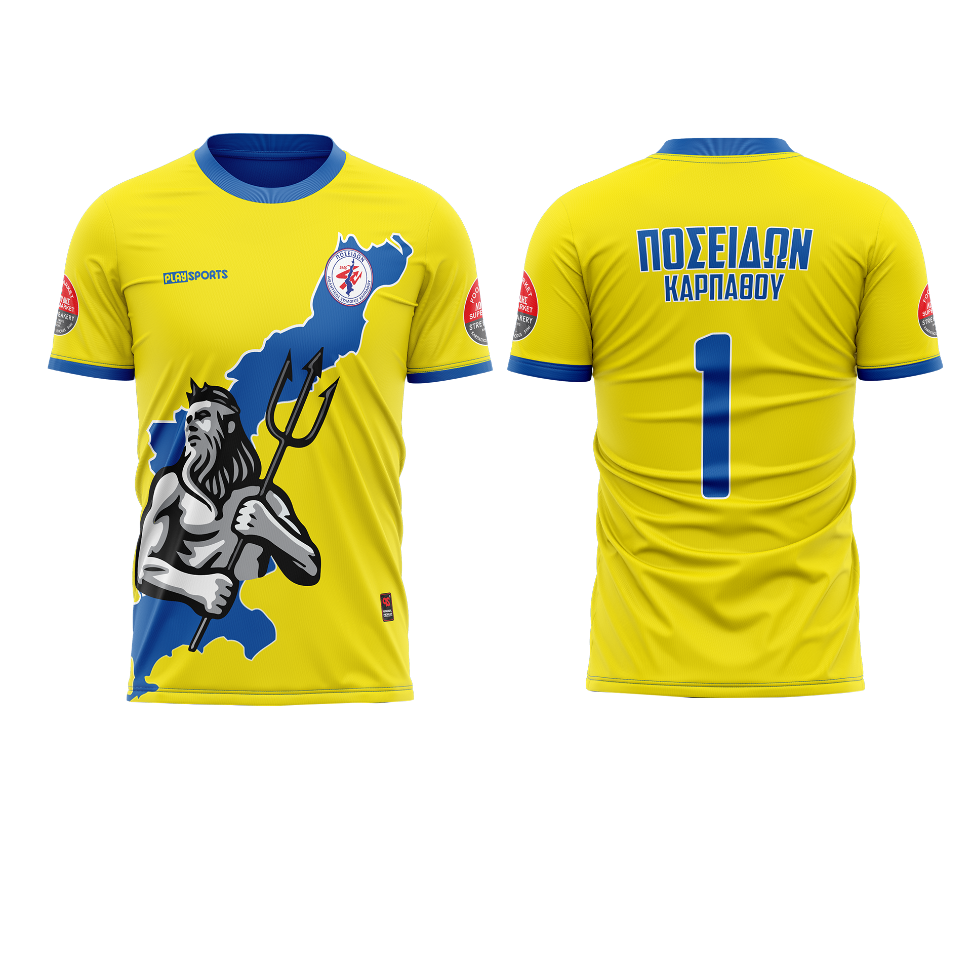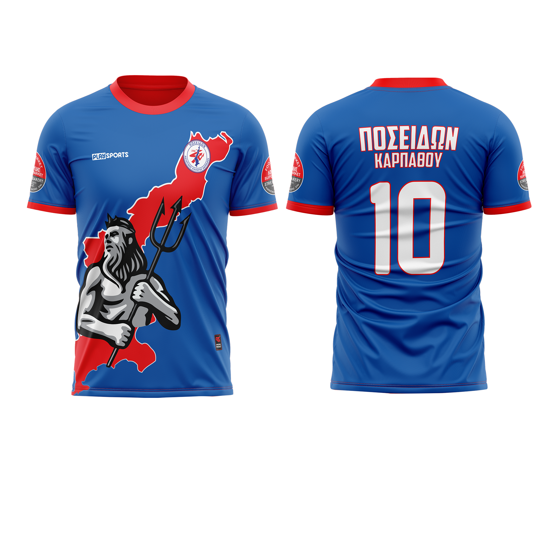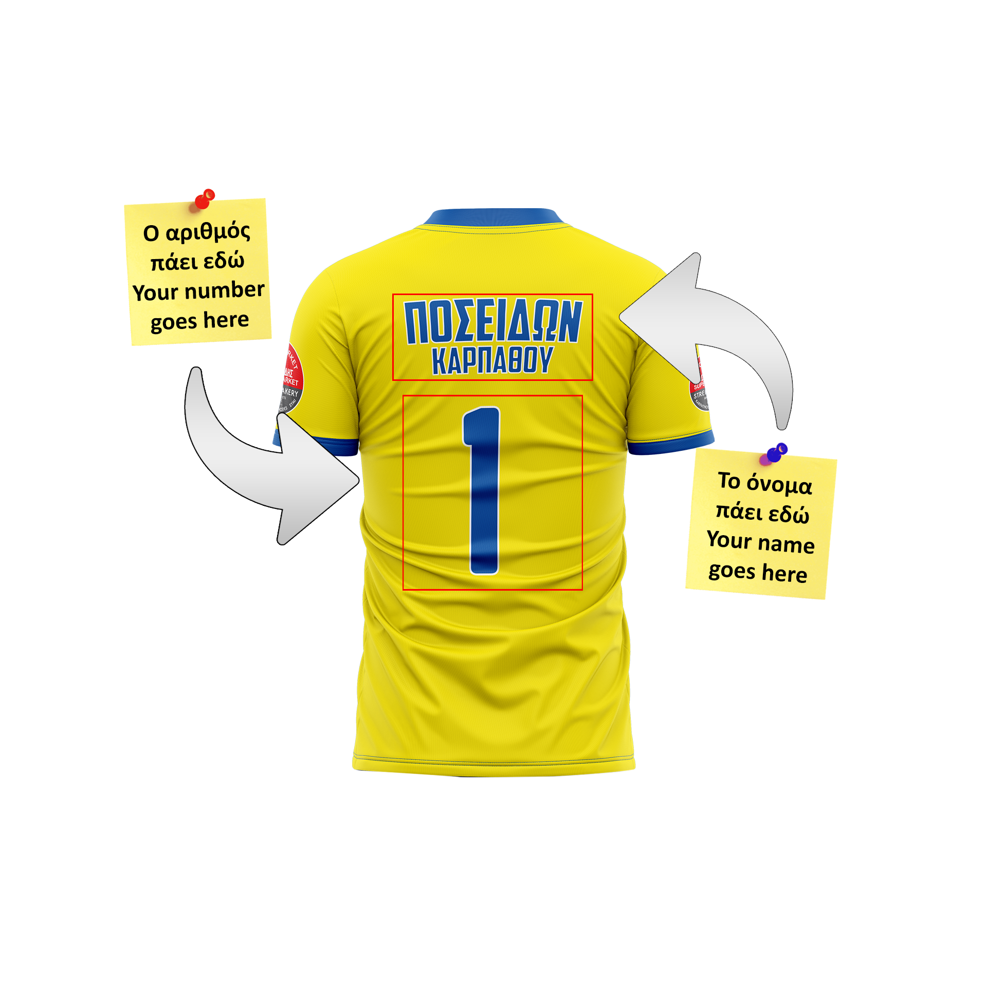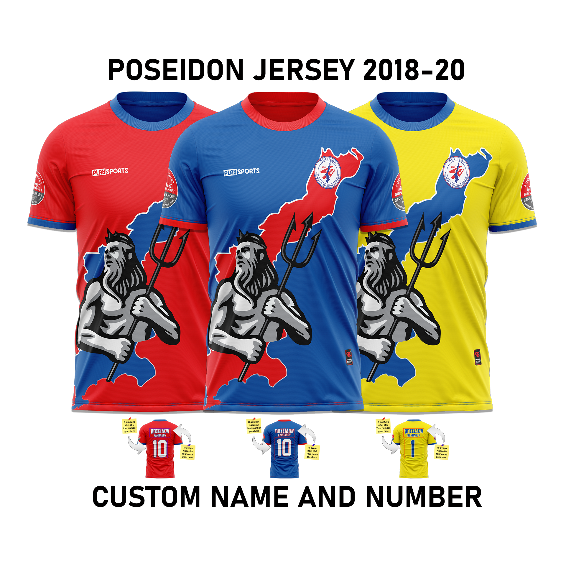 Με αυτό το προϊόν σας δίνεται η δυνατότητα απόκτησης της εμφάνισης Poseidon 2018-20, στο χρώμα της επιλογής σας (μπλε, κόκκινη, κίτρινη), με το όνομα σας και τον αριθμό της επιλογής σας τυπωμένο στο πίσω μέρος. Το όνομα σας αντικαθιστά την ονομασία του συλλόγου στο πίσω μέρος σε σχέση με τις εμφανίσεις που φοράει η ομάδα μας στις επίσημες υποχρεώσεις της.